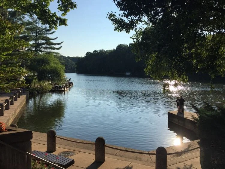 You could walk the Lake Thoreau Loop in South Reston, admire the incredible scenery, and stop to play at three playgrounds minimum with very little detour.