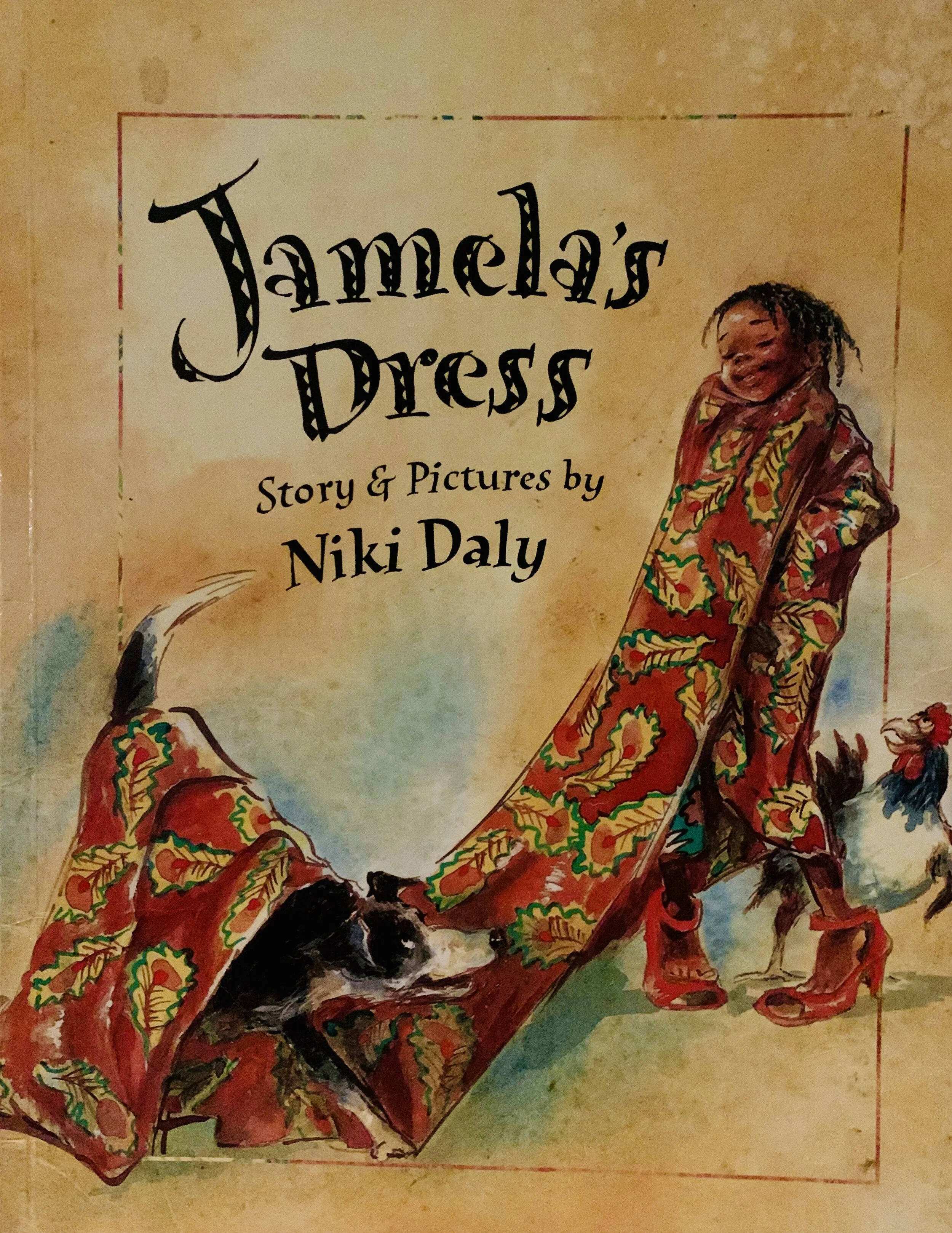 LJ Donnell of Common Ground reads Jamela's Dress. Jamela's mother purchases a length of costly fabric for a wedding, and after washing it, leaves Jamela in charge of the cloth while it dries. Jamela, however, can't resist playing dress-up. Author: Niki Daly Illustrator: Niki Daly